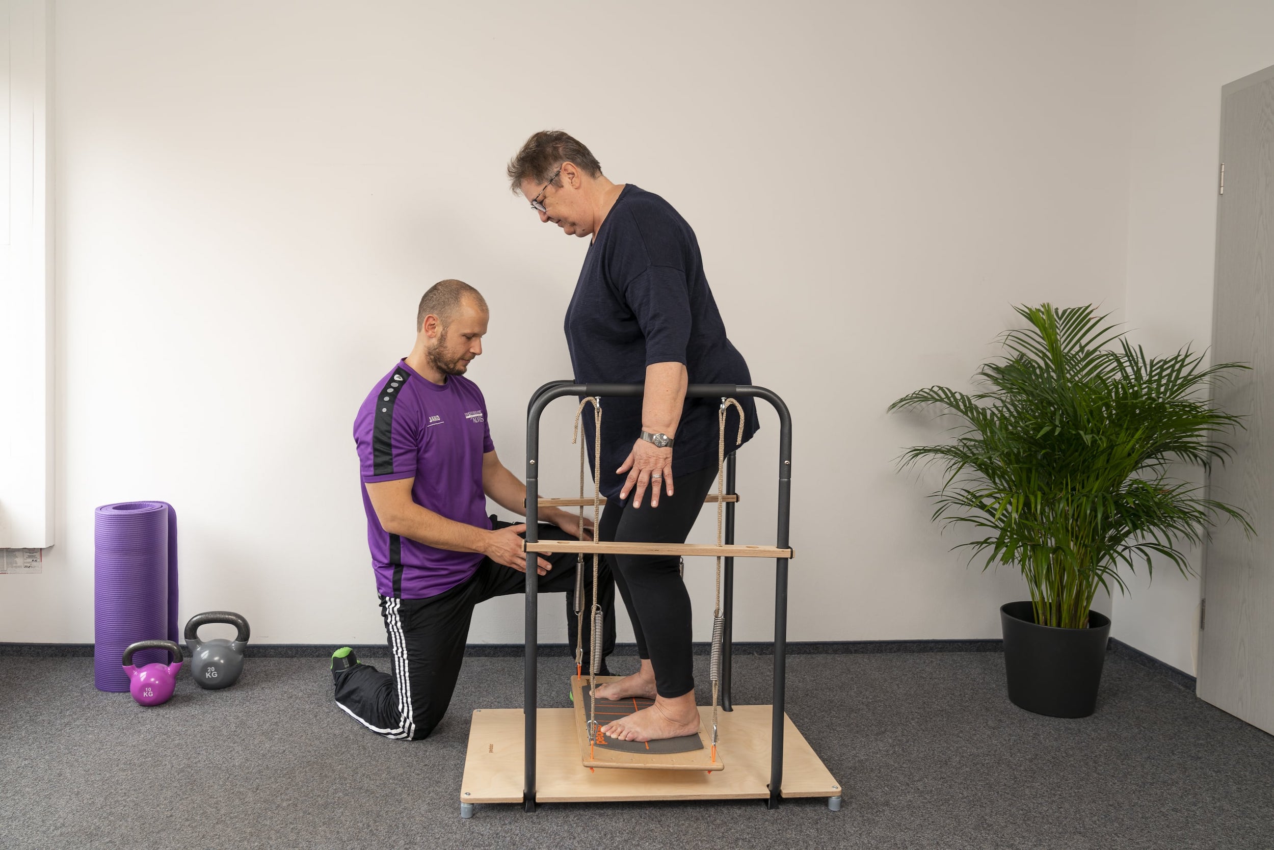 Wir führen die auf Sie abgestimmten Übungen in unserem freundlichen und hellen Sportbereich durch, der Ihnen eine Vielzahl von Geräten zur Krankengymnastik bietet. Die Geräte sind sorgfältig ausgewählt, damit wir gemeinsam alle Muskelgruppen gezielt behandeln können – so können wir auch bei größeren Schwächen oder Einschränkungen eine effektive Therapie gewährleisten. Außerdem begleiten wir Sie bei Ihrem Training zu jeder Zeit umfassend und sorgen dafür, dass Sie mit jeder Übungen optimale Erfolge erzielen!